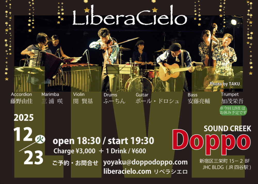 四谷DoppoにてDoppo12周年ライブで同じく12周年のリベラシエロ、ライブやります!