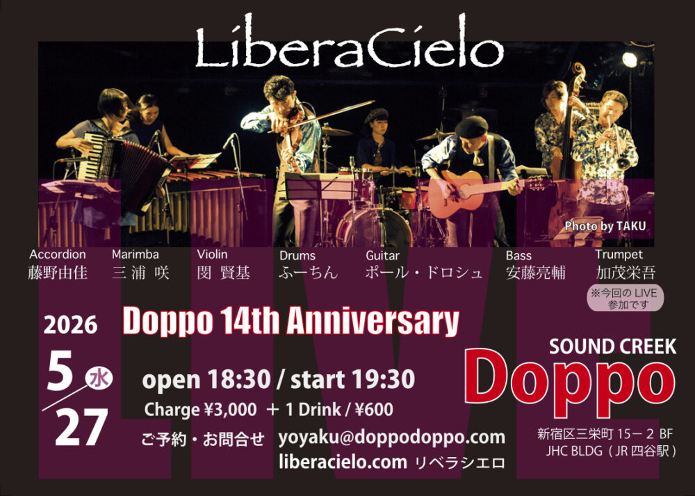 四谷DoppoにてDoppo12周年ライブで同じく12周年のリベラシエロ、ライブやります!
